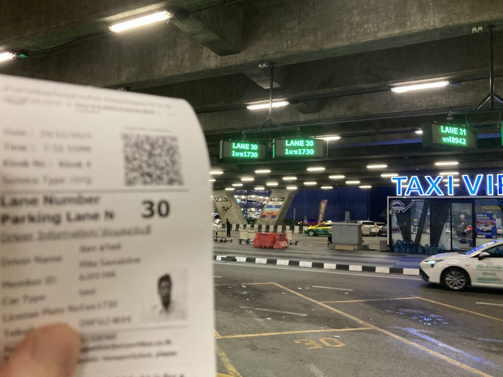 空港の公共タクシー発券機で番号を取り、2〜3分で乗車できました。