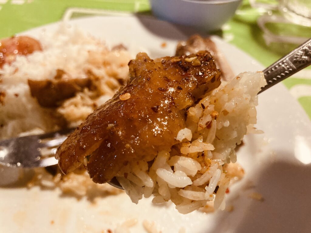 醤油味がしっかりめなので、カオマンガイとはまた違った美味しさがあります。