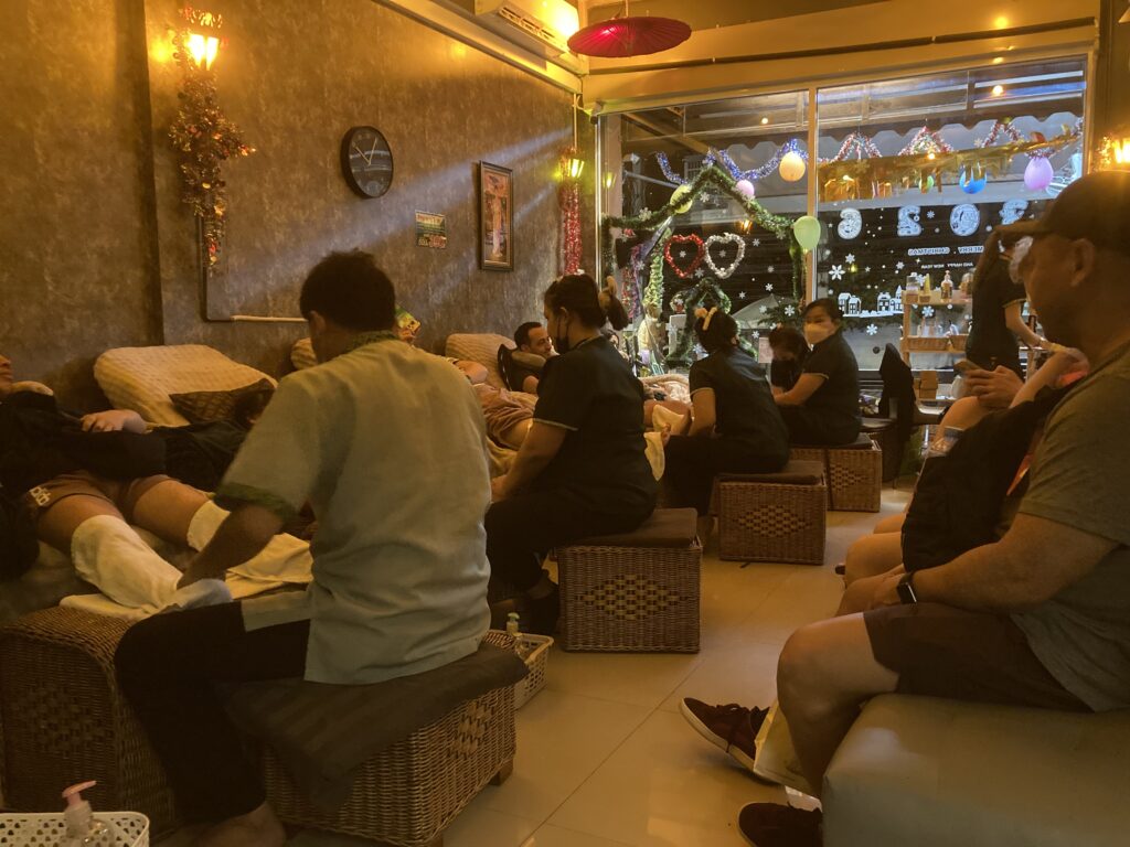 スーパーや屋台が充実していて、生活しやすいエリアだと実感します。駅前から一本入ったところにあるマッサージ店へ。